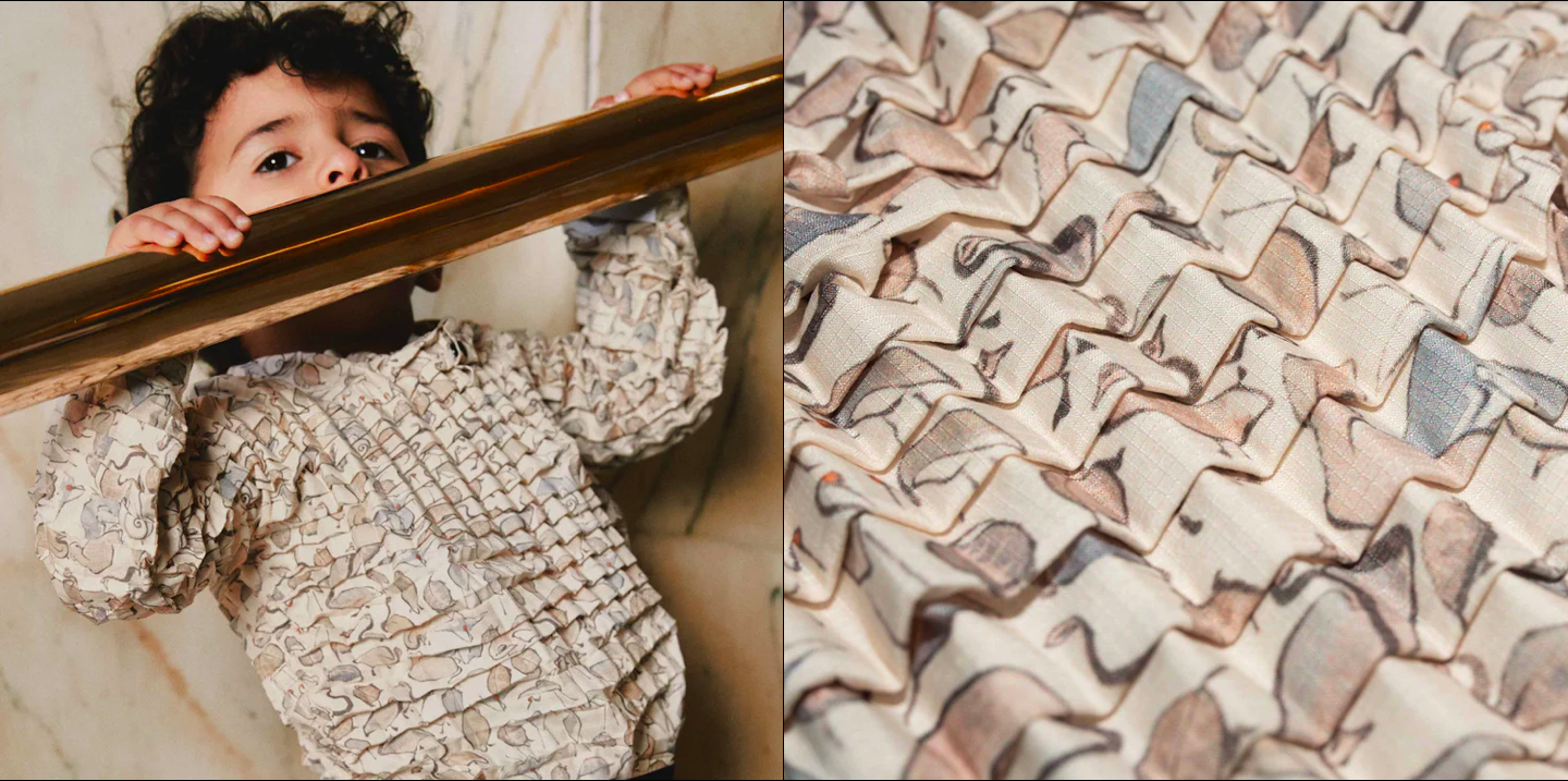 Μεταφέροντας αυτές τις αρχές στον τομέα του σχεδιασμού μόδας, ο Yasin δημιούργησε ενδύματα που προσαρμόζονται δυναμικά στο αναπτυσσόμενο σώμα ενός παιδιού, συνδυάζοντας την τεχνολογική καινοτομία με την καθημερινή λειτουργικότητα. Τα ενδύματα είναι κατασκευασμένα από ένα πατενταρισμένο ύφασμα ripstop που είναι ελαφρύ αλλά ανθεκτικό, προσφέροντας ελαστικότητα, άνεση και αντοχή. Η απαλή επιφάνεια εξασφαλίζει μια ευχάριστη αίσθηση στο δέρμα, ενώ η τεχνική δομή επιτρέπει την ελευθερία κινήσεων για παιχνίδι, τρέξιμο ή αναρρίχηση.